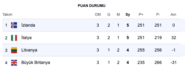 İzlanda'nın galibiyeti ve grubun diğer maçında İtalya'nın Büyük Britanya karşısında aldığı sonuçla birlikte D Grubu'nda inanılmaz bir tablo ortaya çıktı. Şu an gruptaki dört takımın da galibiyet ve mağlubiyet sayıları eşitlenmiş durumda. Herkesin herkesi yenebildiği bu grupta avantaj elde etmek için seri yakalamak şart.